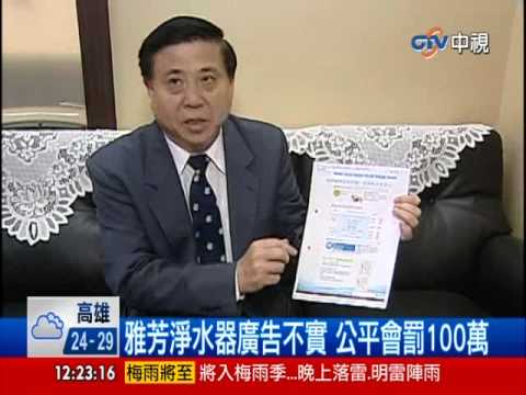 在不少網站及媒體中大打廣吉的雅芳淨活水淨水器,宣稱通過國際水質協會認證,*NS*---------還通過美國水質協會167項的檢測,符合美國國家基金會三項重要標準。但事實上,這款淨活水淨水器根本是韓國做的,更沒有取得所謂NSF的認證標誌,由於廣告不實,違反公平交易法,所以將處新台幣一百萬元罰鍰。 【訂閱中視新聞】...